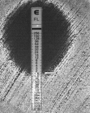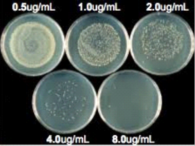 Dilución en agar: Se procede a la dilución del antimicrobiano en un medio de cultivo apropiado y solidificado con agar. Se inoculan los microorganismos en la superficie del medio. Se incuba a una temperatura adecuada y se determina la concentración del antimicrobiano que produce la inhibición del crecimiento.