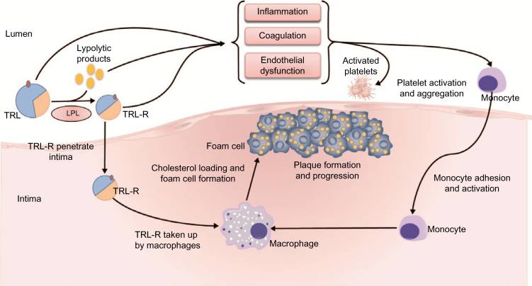 Algunos autores proponen que las TRL contribuyen directa e indirectamente a la progresión de la aterosclerosis. Se proponen dos tipos de mecanismo directo e indirecto.