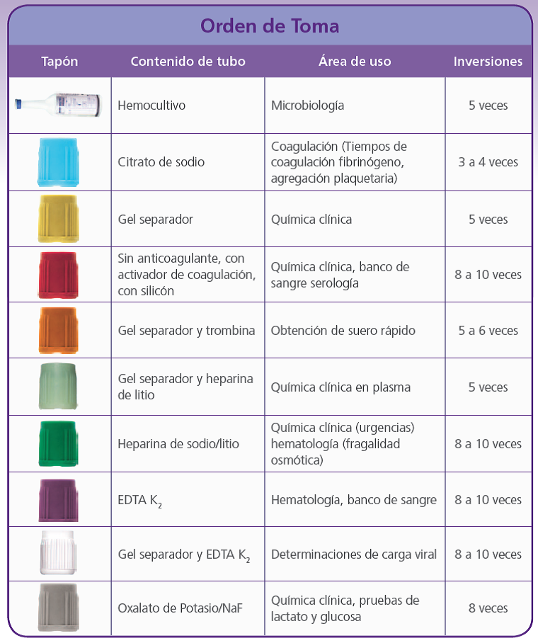 Guía de llenado de tubos según CLSI.